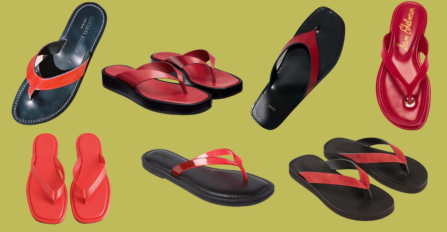 ’Tis the season. Last summer I was foaming at the mouth for the Ancient Greek Jelly flip flops but after ordering them I just KNEW they were gonna hurt so it was an immediate return. This time around I’m seeing other red offerings + I found a cheaper jelly alt!